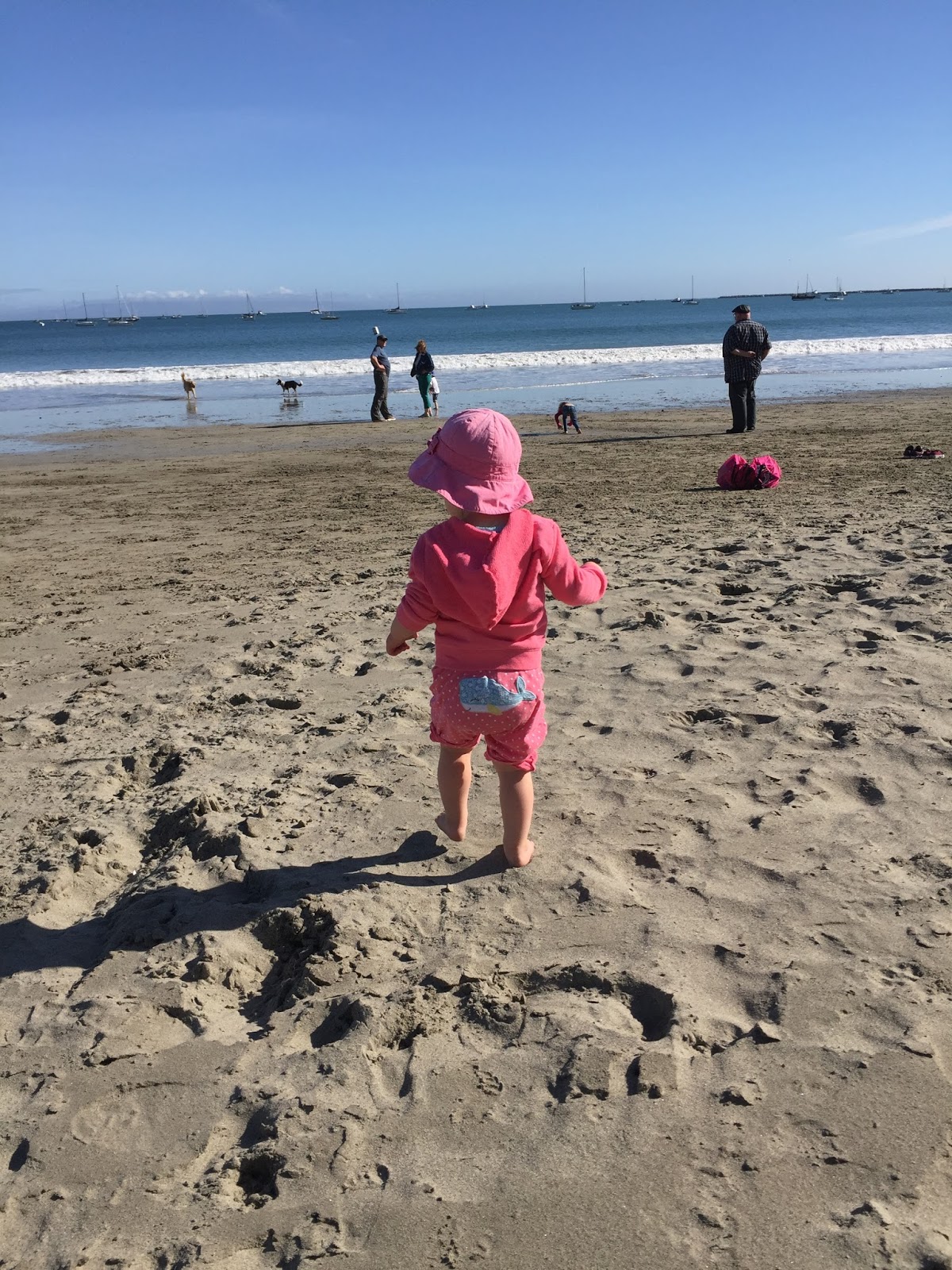 We had a great holiday to California! We stayed in Pismo Beach and spent time in San Luis Obispo each day seeing Uncle Matt and Uncle Jay. Traveling was a bit challenging with two kids. On the flight on the way there, Hadley was pretty upset that she couldn't get down and run around, and she was ready to get out of the car on the drive to hotel. After we got to the hotel, we went to Avila Beach, and the kids played in the ocean. Brax loved the waves and got knocked down. Good thing I had a change of clothes for him! Hadley was more hesitant and got her feet wet, but preferred the sand. We walked along the pier and bought a few souvenirs before going to Uncle Matt's house for dinner.