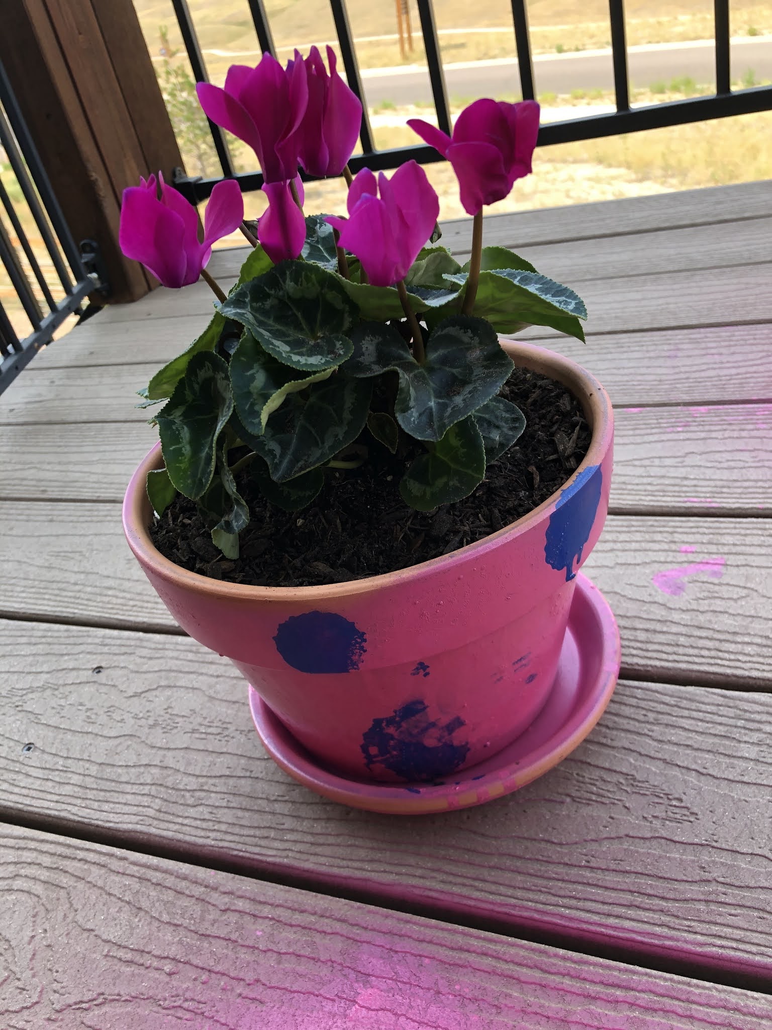 While Wade and I were working, the kids decided to get spray paint out of the garage and spray paint a pot on the deck. Sigh